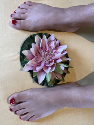 Bei dieser Massage werden die Füsse, Unterschenkel und Knie massiert. Diese Massage wirkt erdend, bringt Sie in die Ruhe und verleiht Stabilität.